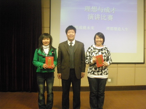 12月10日下午,我院在朝晖大学生活动中心三楼多功能厅举办2008级本科新生“理想与成才”演讲比赛决赛。院党委副书记高建昌老师,院思品室王克智老师,学办主任范婷老师及各年级辅导员出席并担任本次大 赛的评委。来自2008级各班共15名同学登台竞技,共同演绎了精彩绝伦的理想之歌、成才之路。