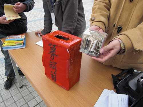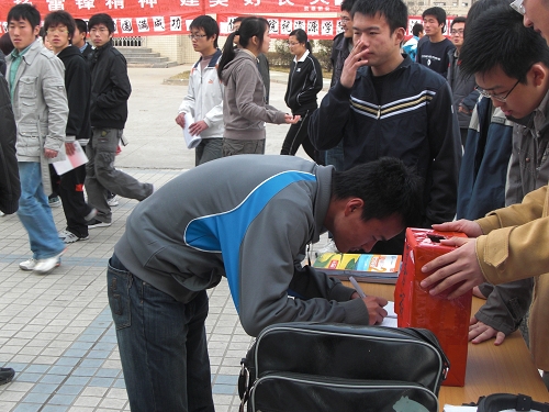 3月5日,工程机械学院团委学生会为我院患有白血病的06级耿亚飞同学在东西区食堂门口举行了募捐活动,仅一天的募捐活动就为一个垂危的生命捐助了14579.18元。