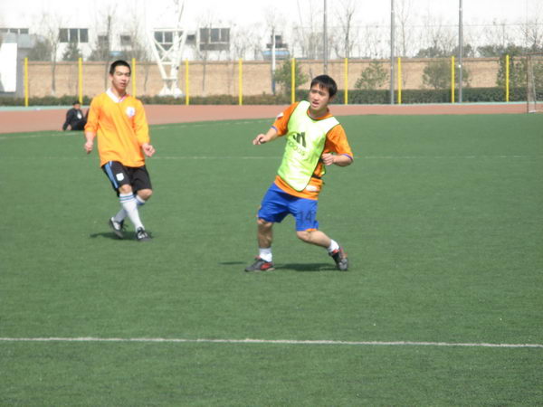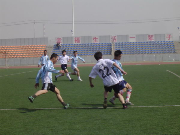 第一场进行的是长安大学—西安交大城市学院的比赛。比赛刚一开始,双方队员就立刻进入了状态。安静的足球场上,气氛顿时热烈了起来,加油呐喊声不绝于耳。双方队员你争我夺,足球在绿茵场上不停的翻滚,时而划出优美的弧线,竞争非常激烈。双方队员怀着“友谊第一,比赛第二”的奥林匹克精神,在球场上都做到了充分尊重彼此,使得全场比赛顺利进行。特别是长安大学的队员们,作为主人,他们发挥了良好的模范作用,给他校队员留下了极好的印象。