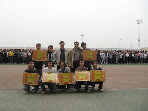 早上8点在长安大学渭水校区朝晖体育场,工程机械学院第一界春季运动会正式拉开帷幕,到场的嘉宾有:工程机械学院党委副书记曾力老师,工程机械学院团委书记朱武威老师以及06、07、08级辅导员老师等。开幕式上,曾力老师和朱武威老师分别致辞,裁判员和运动员代表分别宣誓。