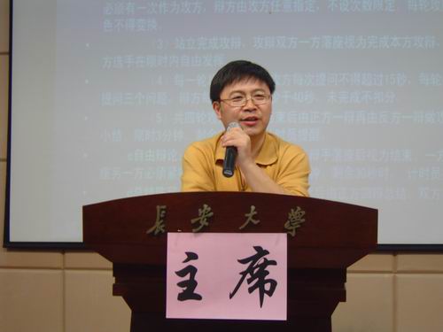 2009年3月22日 ,由长安大学汽车学院团委主办,汽车学院学生会承办的“汽车·争鸣” 辩论赛决赛在长安大学渭水校区大学生活动中心三楼多功能厅顺利举行。决赛的辩题为“青年成才的关键是自身能力还是外部机遇”,由我院副院长余强老师、院党委副书记张增社副书记、辅导员郭咏梅老师、魏立明老师、赵晨老师以及谭晓伟老师担任评委嘉宾。此次辩论赛由学生会代表08级韩畅同学主持。参赛选手亲友团及部分学生代表参加此次辩论赛。