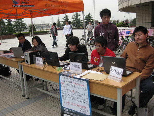 3月29日,长安大学移动科技协会在滋兰苑广场成功举行了“数码大营救”活动。在主席李雅军的带领下,协会成员用自己最大的热情为同学们解决各种电子产品的软、硬件问题。