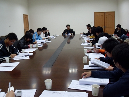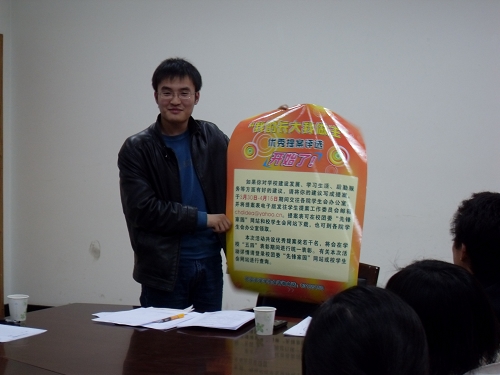 首先,提案工作委员会部长崔磊对提案工作委员会的主要工作内容做了简要介绍:学生提案工作委员会是一个新成立的服务维权部门,肩负着推广学生提案工作,下意上传的重大责任。接着,他对即将举办的“我的长大我做主”优秀提案征集评选活动的策划书做了相关说明,安排了各个学院秘书处在本次活动中的工作,希望得到各个学院的大力支持并倡议大家对学校的建设、饮食、安全、卫生等方面的工作多提建议。