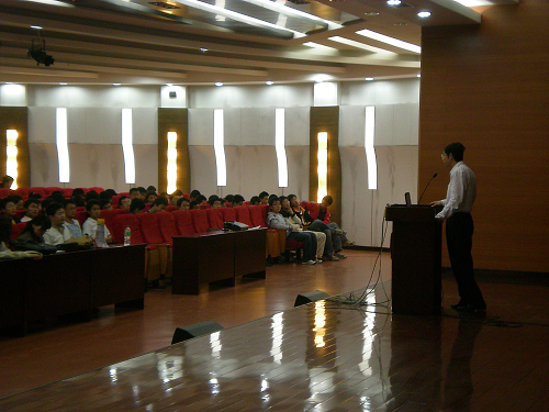 本次活动分为两个环节,第一环节由高书记就深入学习实践科学发展观向同学们作专题理论讲座。高书记首先向全体同学简单介绍了我院学习实践科学发展观的安排与目标,并希望同学们圆满完成每个学习阶段的各项任务。接着,高书记结合学习实践科学发展观活动的开展,着重介绍了我院着力解决的四个重点问题:第一,结合学院规划,着力解决制约学院发展的问题;第二,结合实施本科教学质量工程,着力解决在教学和学生教育方面存在的问题;第三,结合师资与人才队伍建设,着力解决青年教师在培养提高中尽快适应教学科研发展所面临的问题;第四,围绕加强和改进党的建设,着力解决党员干部的思想观念创新能力与科学发展观不相适应的问题。最后,高书记要求全体同学要深入学习科学发展观的具体内容,并切实地将其落实到生活和工作中去,实现科学发展观为我服务、为我创益,同时提升同学们的综合文化素养。