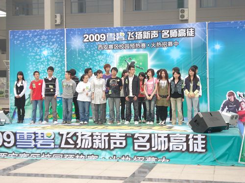 4月12日,由可口可乐公司和江苏卫视联手打造、「雪碧」品牌冠名赞助的“2009「雪碧」「飞扬新声」名师高徒”海选——西安赛区长安大学预热赛,在长安大学渭水校区树蕙园广场举行。经过三轮激烈角逐,共有3名歌手包括一对组合——“卓凡”组合晋级西安赛区选拔赛。