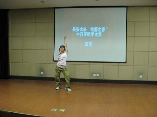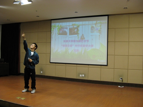 4月19日晚,由共青团长安大学委员会主办,社团联合会及大艺团承办的校园之春“中行杯”歌手大赛复赛第二场在朝晖大学生活动中心拉开了帷幕。出席这次活动的嘉宾兼评委有西安音乐台主持人高扉,长安大学研究生会副主席樊楠,社联主席何暐及大艺团团长李悦等人。参加此次比赛的共有56组选手,两场复赛最终将决出35至40名选手晋级下一轮比赛。