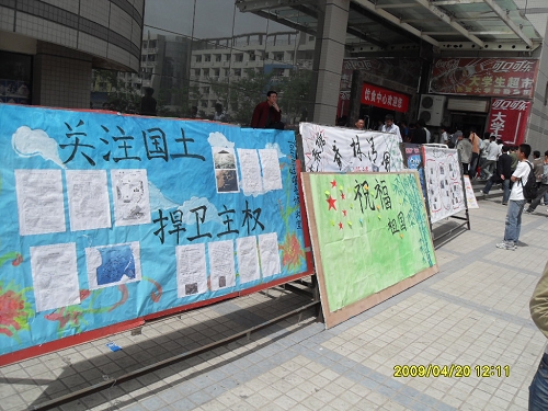 我们爱国同盟与曙光协会共同策划举办了此次关注国土、捍卫主权的活动,经过一段时间的准备,我们两社团的活动终于在4月20日在西区食堂拉开帷幕。