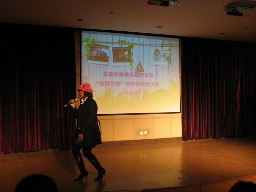 这次半决赛总共有36位选手,分为三组进行比赛。站在舞台上的每一位选手都是出色而又与众不同的,他们的歌曲风味多姿多彩:有抒情的流行歌曲,有经典老歌,也有深情的民族歌曲,动感的摇滚乐……整个晚上,好歌连台,观众一直徜徉在一片歌声的海洋里。让大家印象比较深刻的是Nango-若兰---一位来自南非的女留学生,她踏着优美的舞姿,精彩的开场一下子就引起了全场观众的欢呼,她投入的演唱、动感而又富有个性的动作让所有人禁不住伴着节奏用双手打起了节拍,英文歌曲的韵味被她表现的淋漓尽致;还有18号选手宋夏燚,一曲黎明的“心在跳”“…我要对你多好,你就要爱我多深…”深情的演唱,让观众的心也跟着跳动起来,掌声一阵比一阵响亮; 25号选手王历行,他用一曲深情的老歌“千纸鹤”“…我的心还不够深,反反复复也是为了你…”动情的歌声打动了现场的所有人;比较有特色的是来自外语学院的28号选手王天翼,他选了一首令人耳目一新的日文歌,流畅的声音似潺潺而流的小溪之水,给人带来一种清新自然的美好感觉,他们的精彩表现得到了评委老师的赞赏与好评。还有李龙的“世界末日”,黄冬箐的“梦里花”,王瑾的“爱的主打歌”,王子璐的“燃烧”,杨晨的“高山有好水”,尚毅轩的“暗香”…他们都是舞台上的最亮点,用歌声秀出了完美自我。