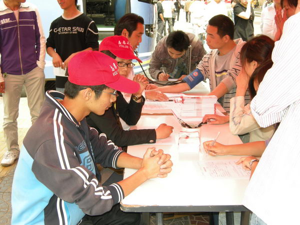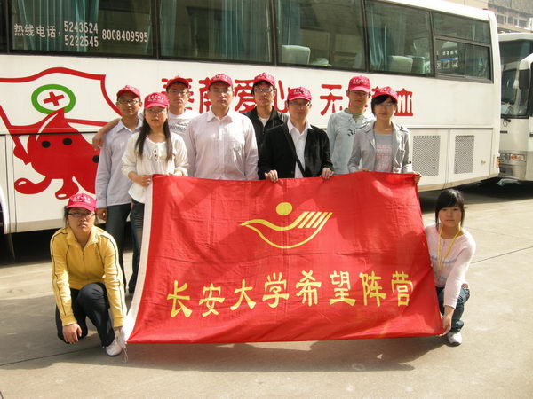 2009年4月26日 ,长安大学希望阵营“无偿献血服务队——第六支队”在陕西省血液中心西安血站进行了义工服务,我社团义工队的出色表现和良好的服务态度得到了血站马队长的高度赞扬,此次活动取得圆满成功。