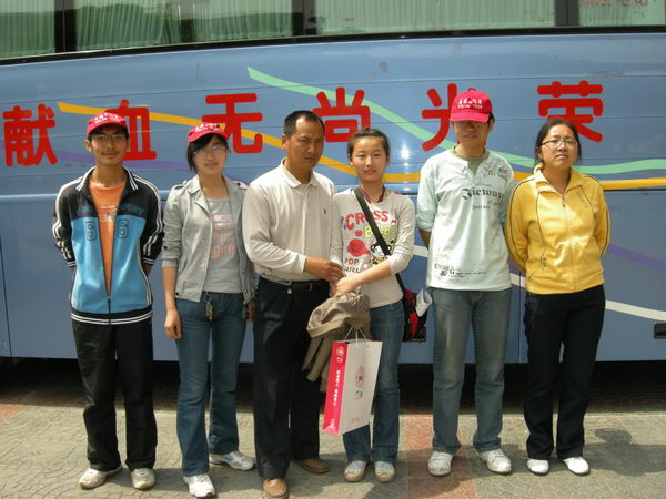 4月26日上午9:30,希望阵营“无偿献血服务队——第六支队”11名队员,分为三组跟随献血车到钟楼附近采血。在车上,马队长给志愿者们做了简短的培训,告诉了志愿者一些采血的知识和注意事项,以便让其更好的提供服务。到达采血地点后,志愿者进行了分工:男队员在车外解答献血者的疑惑,协助他们填好信息登记表;女队员们则在车上帮医生填写单子,给献血者递上糖开水,并送上最衷心的感谢。前来献血的人很多,从刚成年的少男少女,到年过半百的大爷大妈,一张张充满爱心的面孔,让我们深深感受到人们对爱心事业的热情。