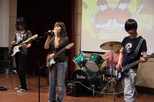 下午3:00,决赛在人们的期待中正式开始。劲爆的开场舞跳出青春的活力,活跃了整个赛场气氛,为决赛拉开了帷幕。第一位选手是来自汽车学院的康凡,一首熟悉的《听不到》弹出了原唱的风格,场下掌声不断。第二位选手是超声波组合,他们演绎着青春的旋律。比赛进行中,选手的风格也由最初的摇滚变为了流行音乐。第三位选手一首梁静茹的《遇见》,使人沉醉其中。第四位选手 “别有风格”原创歌曲《可爱的模样》,让年轻的歌没有终点,也让这个年轻的女孩在这个舞台上勇敢翱翔。接下来优美的《故乡》,把人们的思绪待到遥远地方;《一辈子的十分钟》又让听者伤感;《外面的世界》则唱出在游子的无奈;《蓝莲花》则更为帅气。决赛的最后,两首英文歌曲弹唱为比赛再添靓丽风采。
