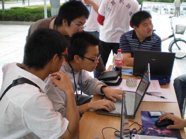 “摄像头倒置了”、“分不了盘”、“光盘读不出来”、“没有声音了”、“系统运行太慢”、“中毒了”,同学们询问着自己遇到的各种问题,工作人员都耐心并且熟练的解决着,这样认真的工作态度赢得了同学们的一致赞扬。