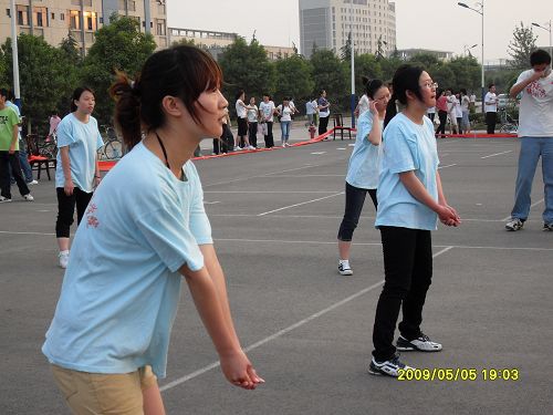 5月5日下午6点在东区排球场小组赛正式开始,小组赛对阵情况为:信息学院与建筑学院,体育系与外国语学院,电控学院与公路学院,经管学院与工机学院。排球场上运动员们个个摩拳擦掌,相互鼓励,各个学院的啦啦队也前来为比赛加油助威,整个赛场气氛十分热烈。四场比赛都进行的十分激烈,已是五月天,虽然已经傍晚,可阳光势力不减,选手们奋力拼搏,虽汗流浃背,却丝毫没有懈怠。她们展现给我们的是一种健康活力的美感,正契合了“阳光体育运动”的主题。