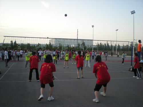 5月7日下午6:00在,第三届女子排球联赛第一轮小组循环赛第三场在东区排球场上进行。