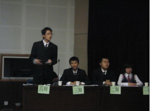 2009年5月7日晚19点,长安大学第四届辩论赛半决赛在朝晖大学生活动中心3楼多功能厅进行,我院代表队与汽车学院代表队在半决赛相遇并展开较量。最终我院以出色的表现赢得了本次比赛,成功晋级决赛。