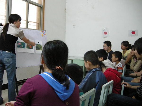 在安排工作之前,老师首先向我们讲述了活动过程中的注意事项。我们按照老师的安排辅助工作,陪同孩子们一起上了口语认知课、生活自理课和数学课。生活自理课上,老师教孩子们怎么来洗脸,洗脸需要哪些用品这些简单的生活常识。或许对于同龄的正常孩子来说,这些都是轻而易举的事儿,但对于他们而言却依然非常困难。有些孩子语言上有障碍,有的行为上不由自主。所以在上课时,老师不得不不断地重复某句话或某个动作以求他们能听懂,有时只要求他们能听见。当他们表现得很出色时,我们会集体为他鼓掌,并鼓励其他小朋友向他学习。