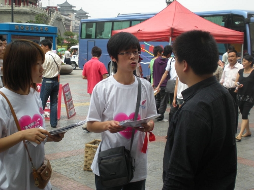 志愿者活动于9:30正式开始,分别在小寨开米广场,西华门广场,桃源路华润万家超市广场,钟楼邮局广场四个地点开展了捐资助学活动宣传工作。