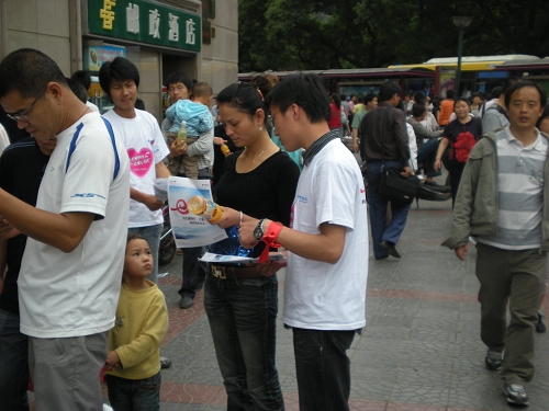 摄氏25度,火热的并不仅仅是酷热难耐的天气,还有志愿者不灭的热情一位王同学就表示:“路人有时侯会把我们和那些促销人员混淆,不会听我们过多的说明,总是冷言相对。但一想起能为小朋友们上学出一份力,我就一点也不计较这些小的不愉快。总之,我志愿,我高兴。”尽管如此,依然有行人十分善解人意,在听完志愿者的解释后,会随即让他们指明活动现场的位置,表示愿意去关注,献出自己的一份爱心;还有老年人主动上前询问活动相关事宜。“有时候能劝说一个行人去活动现场,我就感觉特满足,因为又帮助了一位小朋友”一位吕同学自豪的说。