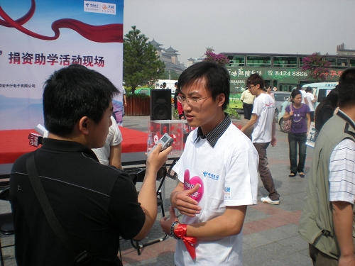 5月17日,“世界电信日”当天,我校30名志愿者参与了由西安市红十字会发起,中国电信西安分公司承办的“与天翼同行,让爱心无限”捐资助学志愿服务活动。古老的钟楼见证了他们爱心的传递。