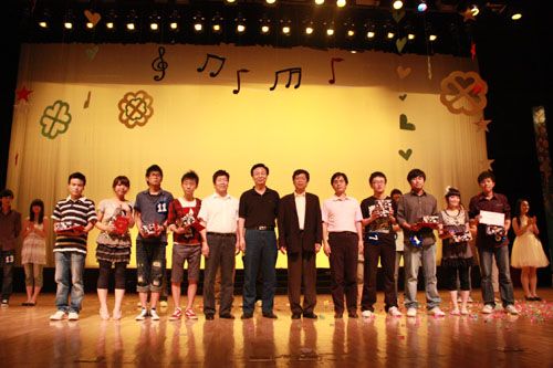 党委宣传部部长黎开谊为冠军《爱的谎言协奏曲》颁奖