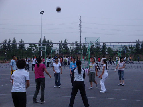 5月21日下午6:20东区排球场的场地上如期上演了女排联赛的四分之一淘汰赛,经过了小组赛的六场比拼,八支参赛队伍脱颖而出,今天这八支队伍将在这里进行新一轮的比拼。