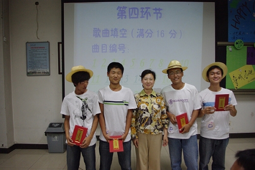 最后资源学院党委副书记郗波老师对本次比赛进行了精彩点评,充分地肯定了本次活动的价值与意义,并由嘉宾为获奖队伍颁奖,一等奖为资源勘查工程三班“young dream”队,二等奖为07级资源环境与城乡规划班“音城乐规”队,三等奖为08级旅游管理班“sing幻之旅”队,优胜奖为08级资源勘查工程一班“青春不扣扣”队,到此资源学院“happy misic”对歌大赛已经取得圆满成功。