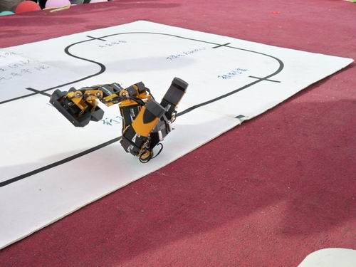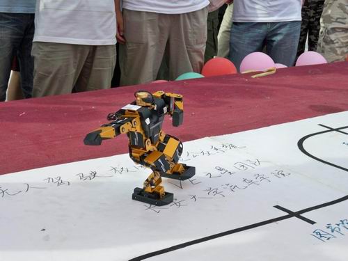 由我院06级及07级同学在工程训练中心老师的指导下自主研制的智能机器人更是吸引了在场的每一位同学,它们精彩绝伦的演出博得了同学们阵阵掌声。ROBONOVA—1机器人用富有中国特色的太极拳及青春活力的动感舞蹈回报了同学们对本届汽车文化节的支持。