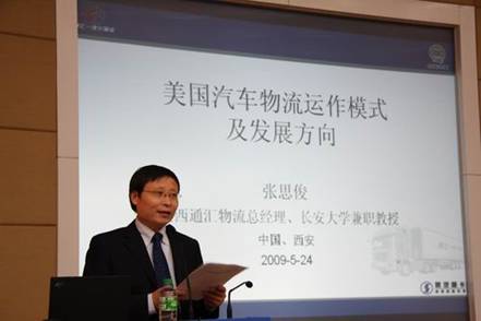 报告会上,张思俊总经理根据自己在国外的经历和体会,从北美物流外包模式背景、精益物流理念和基本运作网络、主要运作特点、面临的市场压力和同步物流的发展趋势等各个方面,向与会老师和同学作了详细讲解,内容丰富,案例翔实,使我院教师和学生对北美汽车物流的基本运作模式有了初步了解。