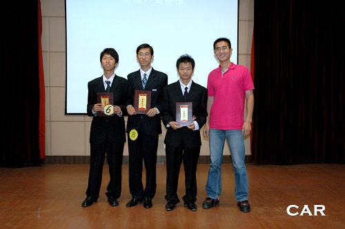 14组信心满满运筹帷幄的创新团队在赛场上展开了激烈的比拼,他们以专业人士的角度对汽车市场现状及销售前景经行了细致的分析,同时将一个个创新绝妙的营销策略娓娓道来,引起了在场观众的阵阵掌声。来自汽车学院07级交通安全二班的“销量催化剂”团队凭借出众的团队配合、生动的演示解说及敏锐详实的答辩夺得桂冠。“Sale Light”与“二一组合” 获得了二等奖,“臭皮匠”、“Fly Sky”、“Dreaming Team”获得了三等奖。
