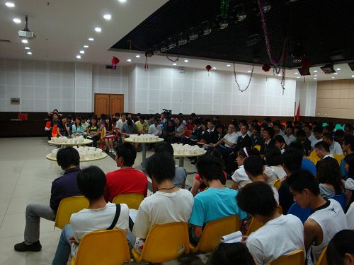 阳光绽放的六月踏着轻盈的步子,无声无息的走来,又是一个离别的季节。长安大学校学生会换届选举也即将展开。走进多功能厅,惊奇于这次的例会一改以往会议的形式,像是一次联谊会:几张桌子上面放满了饮料,所有人围着坐下。校园之春冠军王添翼给大家带来了甜美的歌声,还和土家族的姐妹合唱民歌,赢得了同学们的阵阵掌声,营造了现场轻松的氛围。