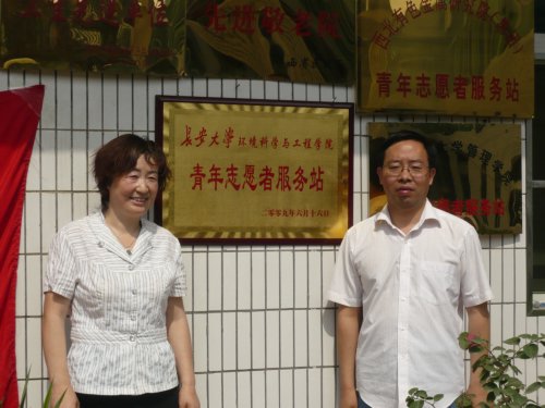 2009年6月16日上午九时许,长安大学环工学院30余名志愿者再次来到草滩敬老院看望住在这里的老人,同时参加环工学院在草滩敬老院的揭牌仪式,至此,“长安大学环境科学与工程学院青年志愿者服务站”正式成立。参与这次活动的领导有:环工学院党委副书记张金玉、办公室主任马明芳、团委书记王妍、团委副书记邓红章、团委秘书长姚以亮老师以及草滩敬老院的院长王晓珍等。
