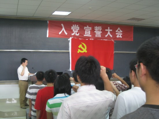 2009年6月28日17:00,公路学院渭水校区学生新党员宣誓大会在WM1201教室隆重举行。院党委书记王立平,副书记宋春红、廖谦,学办主任赵武刚及各年级党支部书记出席大会。渭水校区本科生224名新党员及06级、07级、08级全体党员参加了大会。