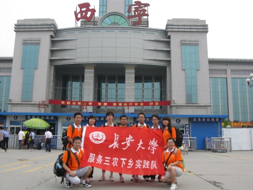 2009年7月15日上午9时,长安大学经管学院“服务三农下乡行”实践队抵达青海西宁,开始了为期一周的暑期社会实践工作。走出火车站之际,我实践队巧遇来自韩国的大学生并进行了简单的交流和沟通,向他们介绍了中国大学生的暑期实践及我们的学校。