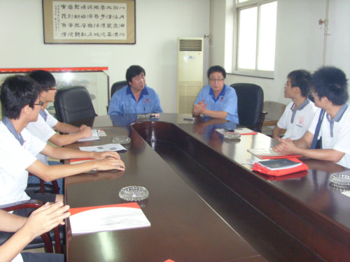 上午十点钟,在供应与动力部张观举部长的陪同下,队员们集体参观了公司的生产车间,初步了解了产品的生产流程并就一些问题积极与生产工人进行交流探讨。最后,张部长又陪同队员们到公司财务部进行交流,队员们针对自身所学专业特点就一些专业性比较强的问题向财务部工作人员进行了认真的咨询。上午十一点半左右,本次交流访问活动结束。