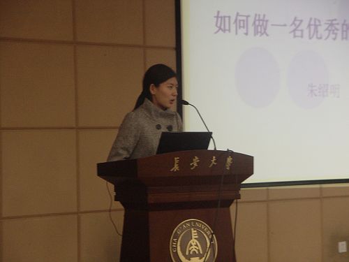 会议第二环节由朱绍明主讲《如何做一名优秀的学生干部》。开席一段话值得每个大学生深思:“一个人的学习成绩决定了他所上大学的水平,一个人的能力素质则决定了他在大学的发展水平。“接下来她围绕“优秀学生干部必须思考的事“、“优秀学生干部必须学会的事“、“优秀学生干部必须杜绝的事”三个方面来阐释怎样成为一名优秀学生干部的主题。在第二部分,她提出了每个学生干部必须具备的十种意识和八种能力,它们分别是:“进取意识、奉献意识、时间意识、团队意识、大局意识、人本意识、细节意识、扬长意识、民主意识“和“策划能力、领导组织能力、谈判能力、执行能力、分析判断能力、沟通协调能力、创新能力、应急能力“。相信这十种意识八种能力将成为每个学生会成员工作、学习、锻炼的目标。她不止一次满怀感恩地说:“是团委和学生会把我培养出来的“,一句话将她对学生会的情谊展露无遗。最后,她又以六个词赠与在场的学生会成员:自立、勤奋、大气、忠诚、感恩、聪明。