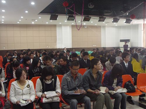 11月6日 中午在朝晖大学生活动中心三楼多功能厅举行了第二次学生会例会暨第二期干部素质培训会。上届校会主席朱绍明应邀出席了本次会议,并给校会成员做干部素质培训。