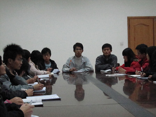 此次例会主要有两项内容。第一项是由各部长做本部门的近期工作报告。在会上,各部门都对前一段时间组织的活动进行了总结和交流,并且汇报了目前正在准备的活动的进展情况,各部门之间也进行了必要的沟通。
