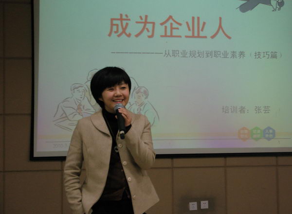 张芸老师是前程无忧网西安首席职业规划讲师,国家注册心理咨询师 。今晚她讲的主题是“成为企业人”。