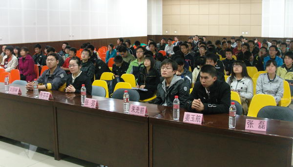 在主持人简单介绍之后,张老师以与大家交流的方式开始了讲座。首先,她问企业到底需要怎样的人?用“钓鱼&生涯规划”形象类比,并结合自身职场经历进行了生动的阐述。又从我们该如何面对职业规划讲述,她说关键是“正心”。还就企业需要的人才类型,企业的本质,作为企业人需要哪些意识等方面的问题一一讲解。最后,她放了励志短片激励大家。老师讲完之后,又有针对性的答了同学们的问题。