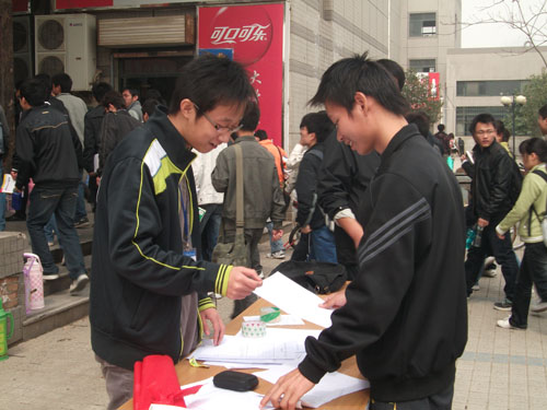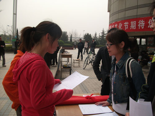 为了使更多的同学参与到第一届图书文化节中来,校学生会图书管理委员会于3月30日、31日在东西区食堂门口增设了图书文化节现场报名点。