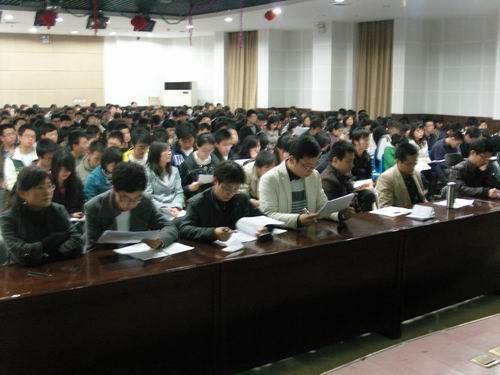 3月31日晚,我校入选“2010年清明节黄帝陵公祭活动”的500名志愿者在大学生活动中心三楼接受志愿服务前的培训。本次培训由校团委朱先前老师主持。
