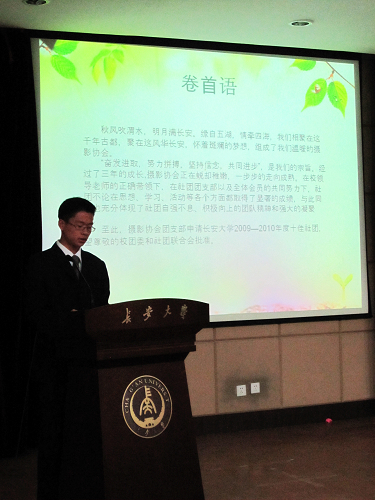 2010年4月7日晚,长安大学学生社团联合会2010年第一次例会暨“十佳社团”答辩会在朝晖大学生活动中心三楼多功能厅成功召开。校团委刘艳艳老师、朱先前老师、张可老师及学生社团联合会主席团成员、各社团负责人出席会议。