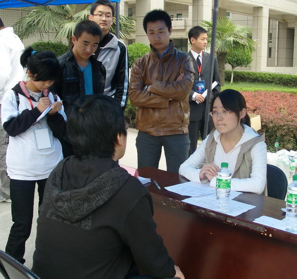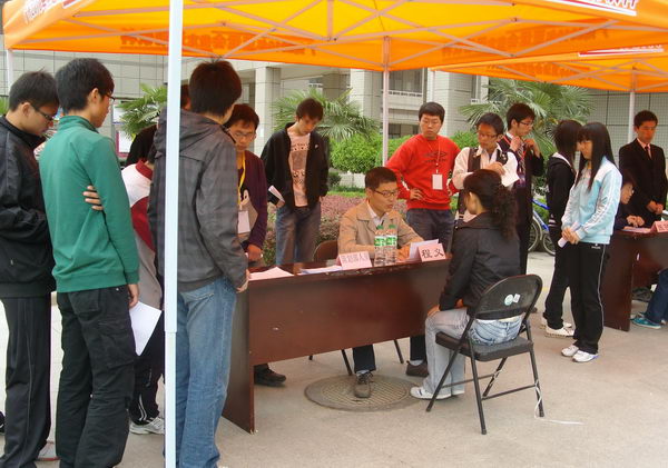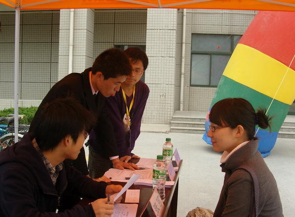 2010年4月10日上午九点半,由长安大学大学生科技创新与创业协会主办的模拟招聘会在长安大学渭水校区修远教学楼二区西门隆重举行。出席本次招聘会的有校团委张可老师、公路学院09级辅导员蒋学猛老师、工程机械学院07级辅导员程义老师、材料学院08级辅导员杨树老师、校科协工作人员及前来参加模拟招聘会的长安大学渭水校区在校学生。