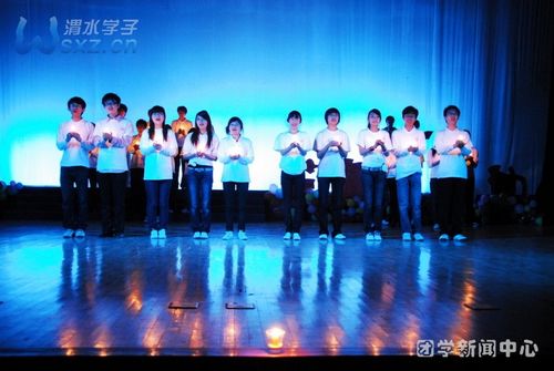 晚会开始,校团委刘艳艳老师首先致辞,倡导大家从自己做起,从小事做起,节约用水,爱护周围的环境。接下来是贾哲浩,杨杰和王昊阳带来的歌曲《饮水思源》,王昊阳钢琴独奏配合着三人的和声,使大家仿佛置身其中,体验着西南旱区的灾情,下一个则是由孙书航与上届渭水之星崔霞共同演绎的《爱与希望》。之后,由几届渭水之星同台演绎二十年前迈克尔••杰克逊带领众位明星演唱的歌曲《WE ARE THE WORLD》,将整场晚会推向了高潮。而五个不同民族的歌曲串烧,则展现了五个民族的不同风情,纷纷表达了他们对灾区人民的美好祝愿。而后,陕西省红十字会嘉宾介绍了近期的灾区情况,全场观众静静的听着,眉宇间流露出深深地担忧之情。最后全体演职人员一起手持蜡烛,为灾区人民祈福,并献上了一首歌曲《祝你平安》。