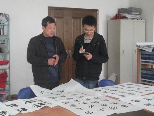 在评选结束后,长安大学学生会新网部记者借此机会对岳老师作了简短的采访,当问及他对这次活动的看法时,岳老师说,“作为一个以理工科为主的学校,同学对于书法的热爱大大出乎了我的意料,总的来说,参赛书作品的质量还是比较高,特别是理工科的一些学生对书法特别热爱,写的字还不错,值得关注和表扬。”另外,当记者问道同学们今后如何再进一步提高自己时,岳老师说:“一是每天要抽出一定的时间来练习;二是要找专业老师指导,三是要多看有关书法方面的理论书籍和理论文章。一个真正的书法家不是光靠练就能把子写好,更主要的是要用各种‘营份’来养字,这些营份就是知识”。岳老师还认为,本次活动对提高同学们的文化修养,丰富校园生活,以及促进校园文化建设等方面都有着积极意义。他希望今后继续扩大书法比赛的规模,以吸引更多的同学们来参与。
