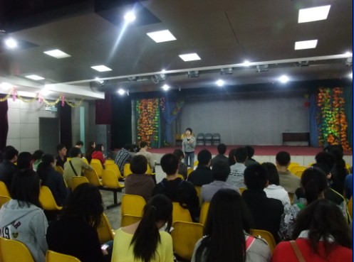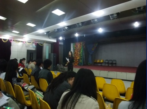在两位副主席分别作了晚会的部署之后, 龚少博老师代表校团委发言。她首先感谢校研究生会的同学能积极参与到此次会议和毕业生晚会的筹备工作中来,这证明校研究生会具有极强的凝聚力;其次,她对校研究生会的许多同学工作中兢兢业业、一丝不苟的精神表示感动;最后,她特别指出,毕业生晚会是本年度校研究生会活动的压轴大戏,是同学们展现自我能力的绝佳机会。本次晚会得到了学校领导的高度重视,希望同学们能认真对待,咬紧牙关,确保晚会的圆满成功。