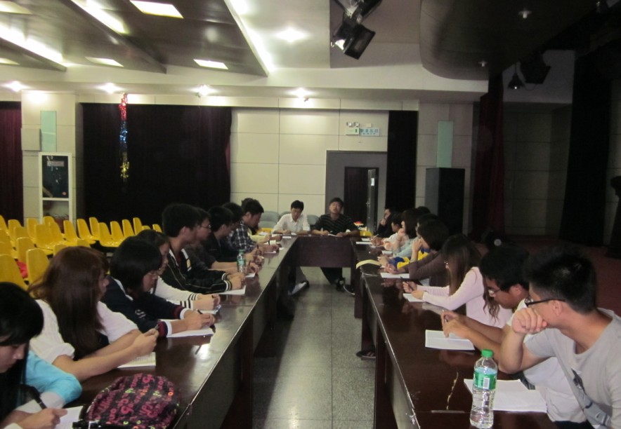 2010年10月9日 晚7时,长安大学研究生会部长级以上会议在长安大学本部东院雁博园多功能厅召开。校团委助理、研究生会秘书长朱先前老师、研究生会主席团成员以及研究生会各部门部长参加了会议。会议由朱先前老师主持。