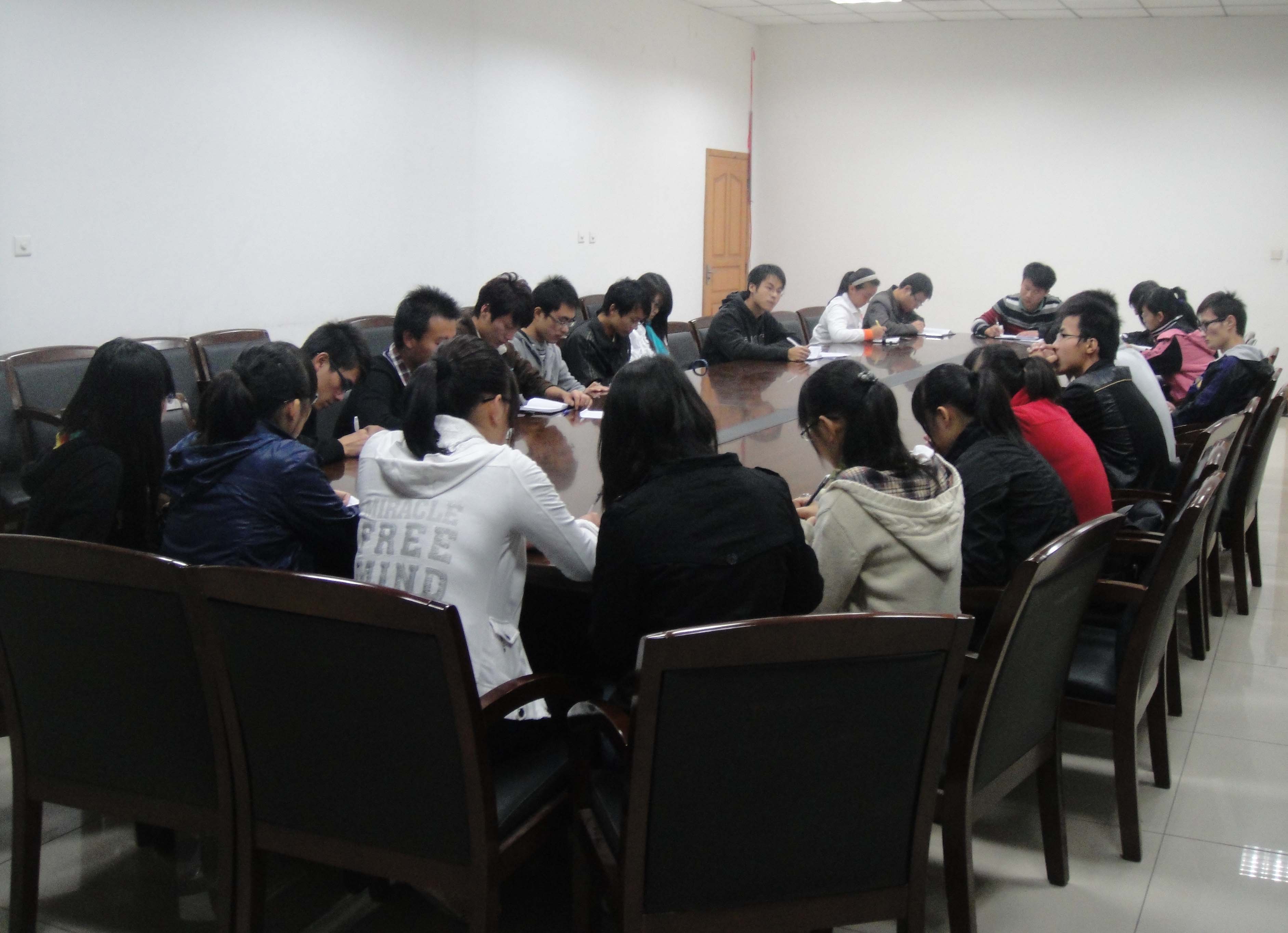 2010年 10月24日晚七点,大学生科技创新与创业协会副部级以上会议在朝晖大学生活动中心一楼会议室准时召开。参加本次会议的有校科协主席王青山、各副主席、各部部长及副部长。