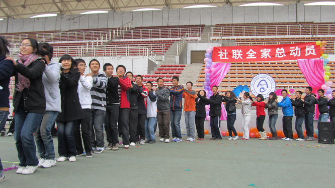 2010年10月31日,社团联合会2010级“全家总动员”活动在朝晖体育场成功举行。活动中,各部门同学表演了精彩的节目,参加了各类活动。现场氛围热烈,实现了活动团结各部门成员,加强组织内部成员交流的目的,深刻地表达了社联浓厚的“家”文化。