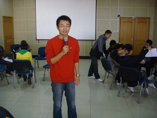 为加强学生会团队建设,增进全体成员之间的了解,促进彼此之间更好的交流与合作,继学生会部长级学生干部心理辅导培训活动成功开展之后,学生会全体干事分为三批陆续参加了团体辅导,分别由体育部部长白冰洋、主席助理刘亚伟、公关部副部长李一楠主持培训。其中由办公室、调研部、实践部、秘书处大一干事组成的第二批辅导会于2010年11月7日上午九点半,在朝晖大学生活动中心三楼视听室,参加了由刘亚伟主持的团体心理辅导培训。